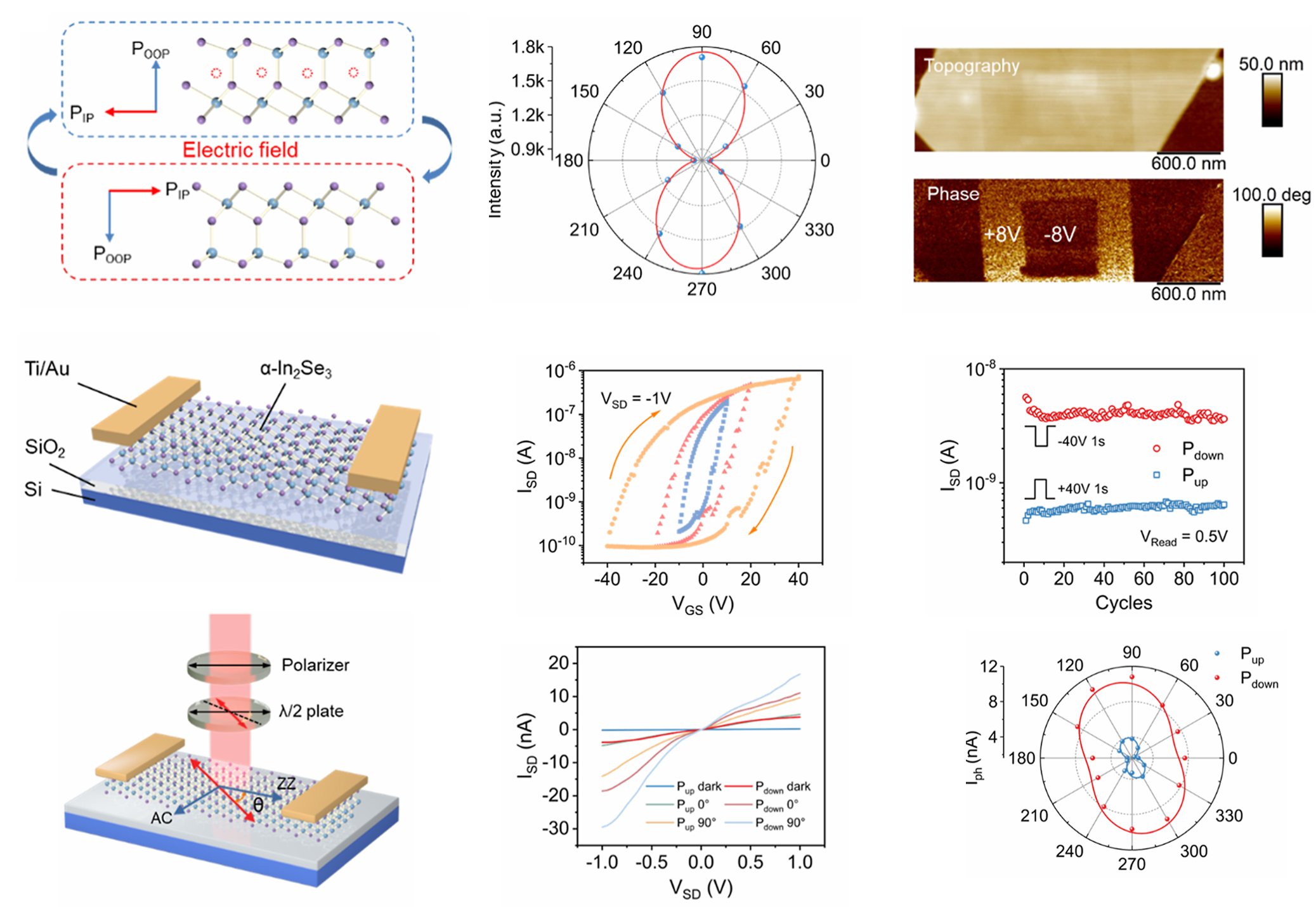 创新点:与传统的偏振光探测器相比能够实现动态调控对不同偏振光的敏感度,与加栅极调控的偏振光探测器相比,无需持续供电,更省电,性能更好。