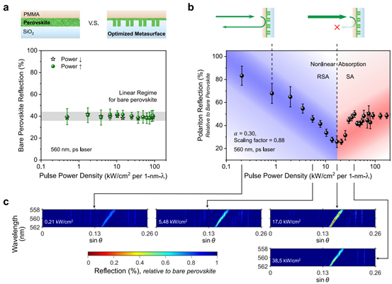 对量子与经典光学信息处理至关重要的少光子非线性的实现极具挑战。激子极化激元非线性超表面作为最具前景的解决方案,却也受到光子捕获效率低和模态重叠度不足的制约。这项工作针对这两点,分别采用准BIC的高Q因子来提高光子捕获效率,并通过自杂化的形式提高模式重叠度。具体内容包括基于不对称度α打破结构对称性的非线性钙钛矿超表面,使得q-BIC得以有效利用。其次,提出了临界耦合条件:腔品质因子与钙钛矿材料损耗品质因子一致,整体场增强最强。进而,提高调节超表面的比例因数实现最低非线性激发阈值的最优器件。创新点一是临界耦合条件的提出为强耦合实验条件提出了新视角,有利于实现最大Rabi劈裂,降低非线性阈值。二需要说明的是该工作利用反射判断反向饱和吸收和饱和吸收的临界阈值。启发在于对于激子极化基元超表面的非线性理解有别样理解。关注了集体极化激元和单激子极化激元的非线性阈值的影响因素。对钙钛矿表面的制作,数据处理皆有较为详细的正文和补充材料解释说明,有参考价值。但也有一些不甚明确之处,比如q-BIC的利用、模式的分量呈现等细节。